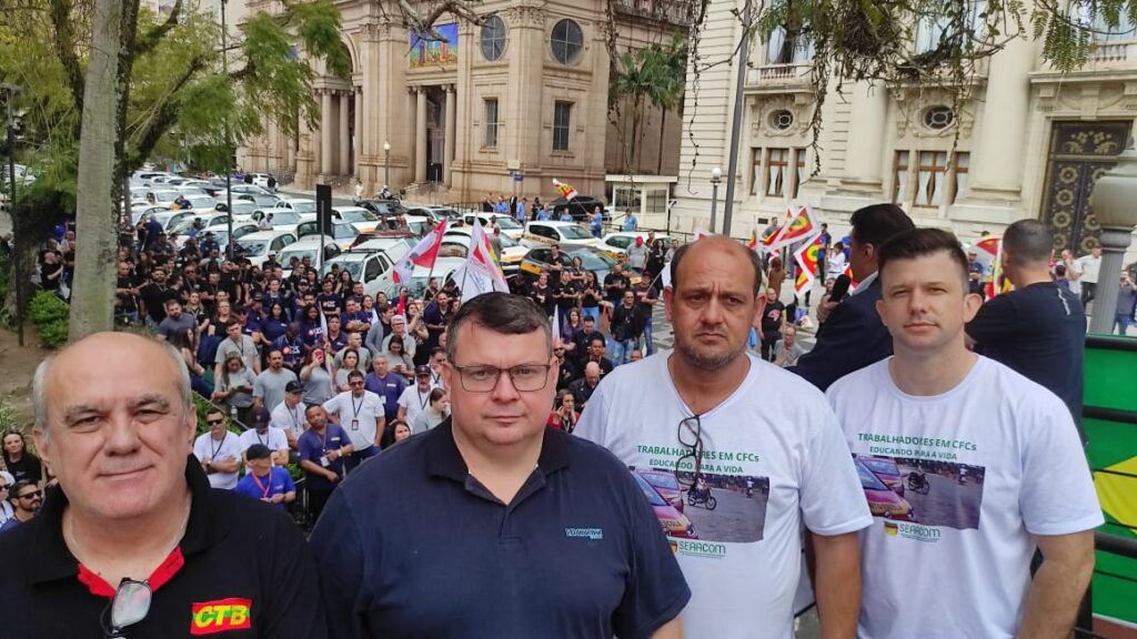 FECOSUL e CTB RS participam de manifestação em apoio ao SEEACOM-RS na defesa da formação para CNH